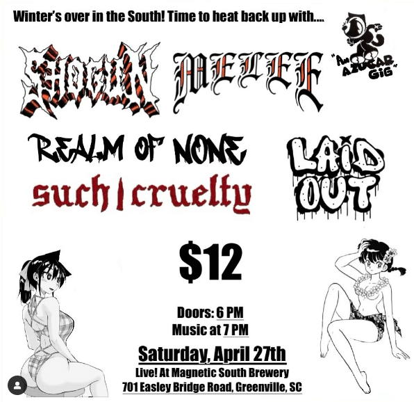 First azucar show at Magnetic South Brewery on Saturday, April 27th!! Tickets available only at the door: $12 Greenville welcomes @shogun_hc for the first time and @melee_hc again from Knoxville! Local support by @realmofnone @laidout.hc @suchcruelty !!! |